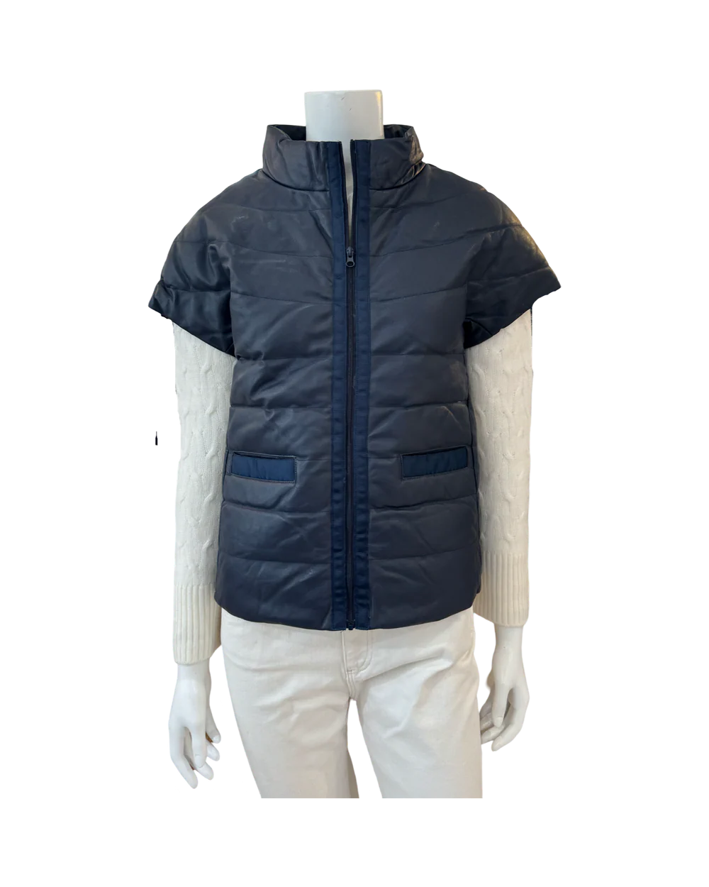 Our best selling Palm Beach Puffer's new sister, The Royal Palm: Same attention to detail with a beautiful flounced back. This one-of-a-kind jacket boasts luxurious down filling, chic cap sleeves, and a sophisticated grosgrain zipper detail. Experience both warmth and style in any season!