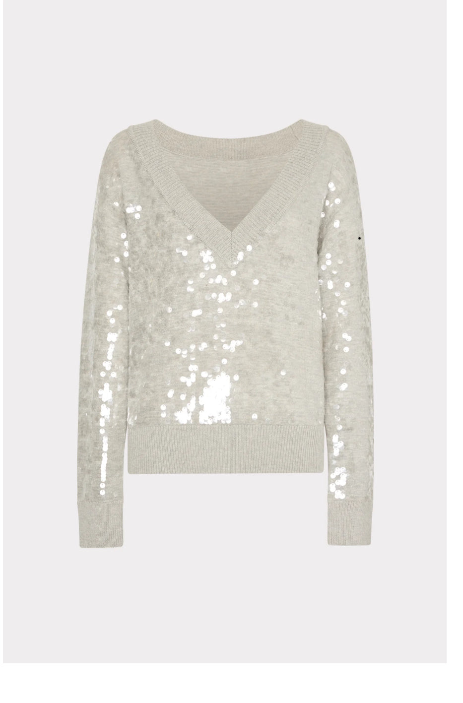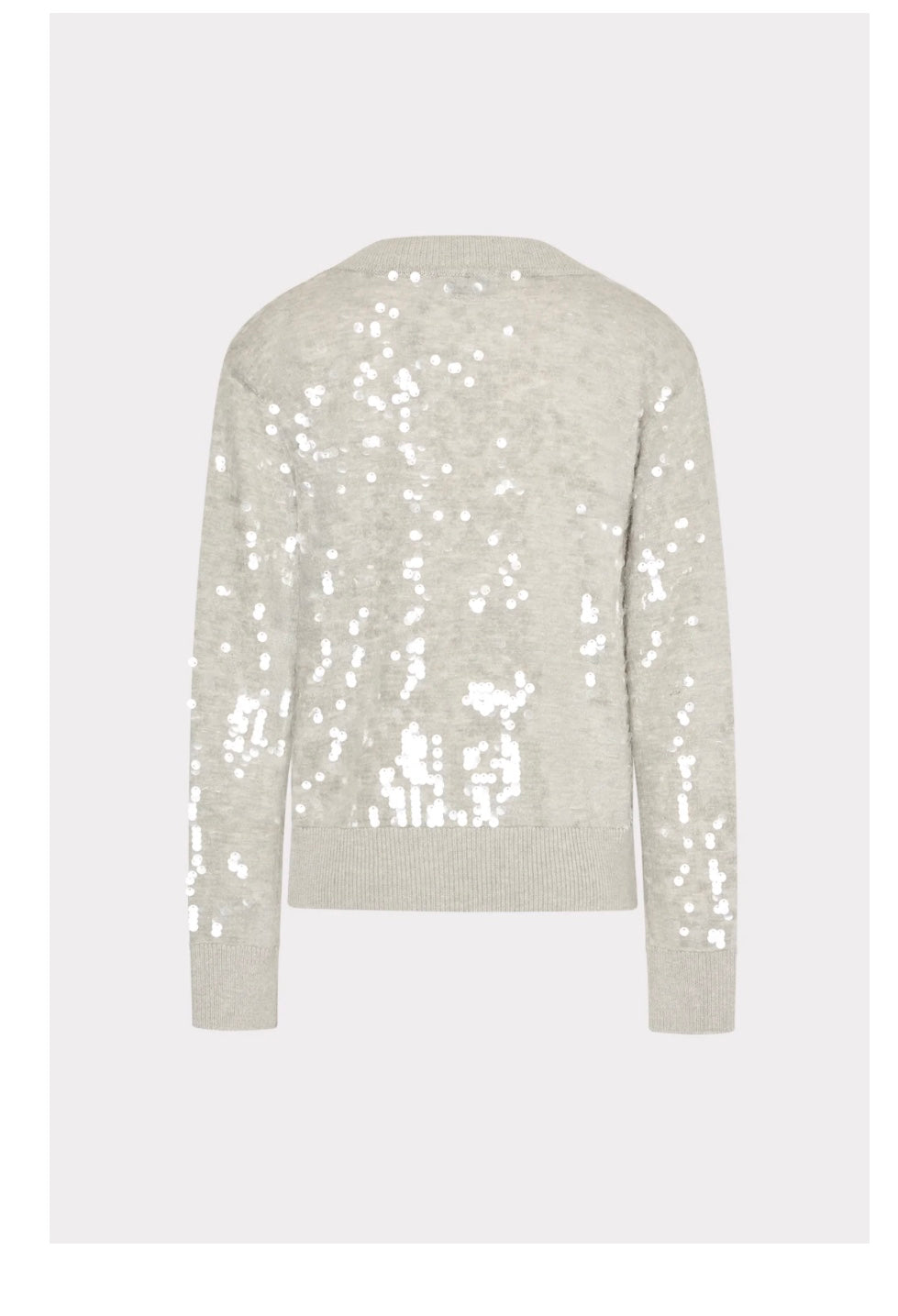 This luxe, relaxed fit v-neck sweater is embellished with sequin paillette detail throughout, which is offset by casual ribbed trim at the neckline, cuffs, and hem. Style it with your favorite MILLY pant or mini skirt.